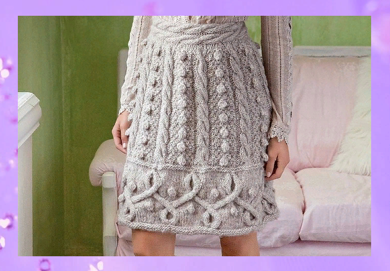 Вяжем роскошную юбку рельефным узором с "косами" и "шишечками"🥰