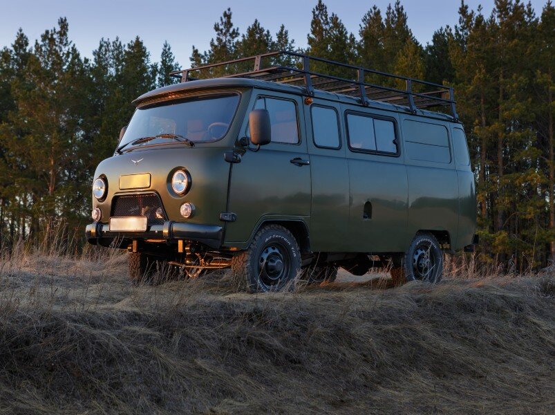 Третье преимущество 452 – это отличная проходимость. Да, это микроавтобус, но свесы кузова у него короткие, да и колесная база не слишком большая. Поэтому, вкупе, с 240-миллиметровым дорожным просветом можно легко покорять сложные участки местности. К этому прибавим жестко подключаемый полный привод с базовой блокировкой заднего дифференциала, понижающую передачу и мы получаем отличный вариант для тех же экспедиций.