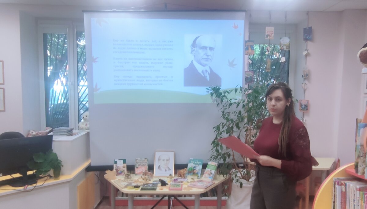17 сентября в Детско-юношеской библиотеке прошла встреча, которая была приурочена к 140-летнему юбилею со дня рождения детского писателя Бориса Степановича Житкова. С большим интересом юные читатели слушали рассказ библиотекаря Анастасии Самаркиной о жизни и творческом пути писателя, смотрели мультфильмы, снятые по мотивам рассказов Житкова «Почему слоны?», «Кнопочки и человечки.», в которых рассказывалось про мальчика Алёшу, который всегда спрашивал, «Почему?». А также ребятам очень интересно было узнать, почему у автора так много рассказов о животных. Читать Житкова — это удовольствие. Он пишет так «вкусно», с улыбкой и юмором, с любовью к животным, подмечая все их забавные повадки и хулиганства. А завершилась встреча мастер-классом, на котором дети создавали картинки с помощью отпечатков листьев. Все рассказы Житкова рассчитаны на детей дошкольного и младшего школьного возраста, но даже взрослому понравятся трогательные, а иногда и смешные рассказы автора.