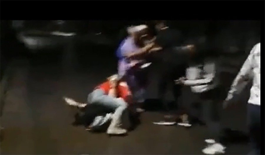 В какой-то момент разъяренные женщины толкают подростка, девочка падает на асфальт. Взрослые начинают ее избивать.