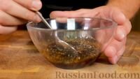 Затем вливаем к кабачкам заправку. Перемешиваем всё вместе. Готовим кабачки в соевом соусе с чесноком ещё секунд 30 и снимаем с огня. Приготовленные жареные кабачки выкладываем на блюдо. Украшаем их мелко нарезанной зеленью, либо, как это сделал я, обжаренным кунжутом, и подаём к столу.