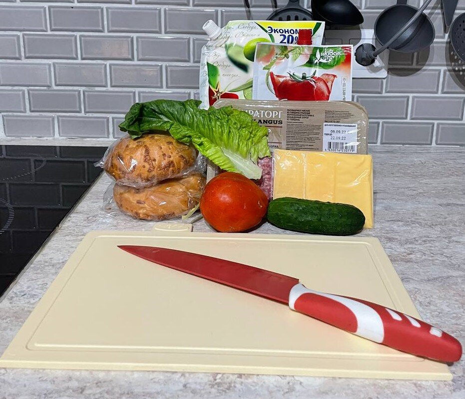 А сегодня хочу уделить время фаст-фуду. Представляю вашему вниманию рецепт домашнего бургера. Итак, на два бургера нам понадобится: Для начала подготовим овощи. Помидор и огурец моем и нарезаем кружочками. Если у вас крупные листья салата, то можно разделить один на 2 бургера. На разогретую сковородку выкладываем котлеты и жарим с двух сторон до готовности. Когда котлеты готовы, выкладываем сыр на готовые котлеты, закрываем крышкой и томим еще несколько минут на медленном огне, чтобы сыр растаял. Булочки режем пополам. Затем смазываем их сливочным маслом и поджариваем на сковородке. Смешиваем кетчуп и майонез в равных пропорциях. Теперь самое интересное - собираем бургер. На нижнюю часть булочки наносим соус. Затем кладем лист салата, на него выкладываем котлету с растопленным сыром. После выкладываем огурцы и помидоры. Я предпочитаю, когда в бургере много соуса, поэтому смазываю им верхнюю булочку перед тем, как накрыть ей бургер. Когда бургер собран, протыкаем его шпажкой по центру,