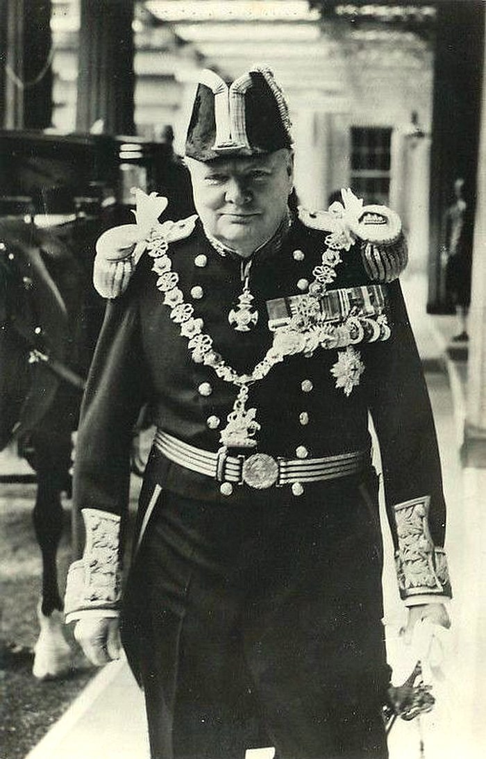 Черчилль в адмиральской форме, 1946 год. 14 августа 1946 года король Георг VI удостоил Уинстона Черчилля (1874–1965) древней чести назначения лордом–надзирателем и адмиралом Пяти портов во дворе Букингемского дворца в Лондоне.