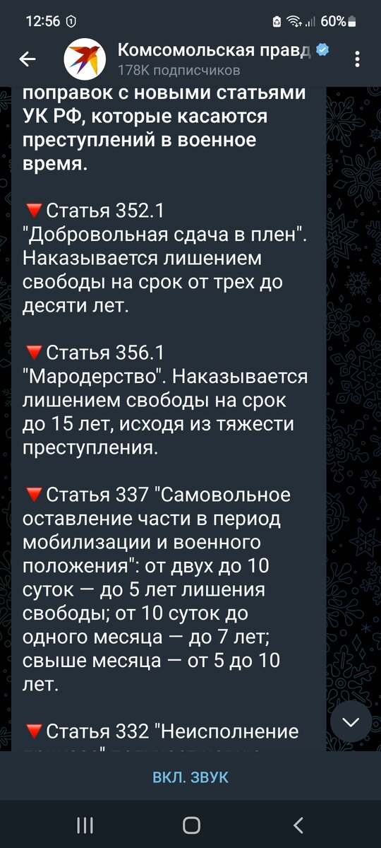 После некоторых инцидентов в армии с отказом выполнять приказы командиров, Госдума ужесточает ответсвенность. Военнослужащий если что то ему не нравилось в прохождении службы просто разрывал контракт. В мирное время это не страшно. Но в период ведения боевых действий это уже уголовное наказание. Правда меня смущает мягкость некоторых видов ответственности за отказ. По многим статьям предлагают давать 2-3 года. Ну если выбор идёт между жизнью и смертью, то человек может пойти на 3 года в тюрьму. Лучше доя многих плохая жизнь лучше, чем смерть. Ещё недавно осуждали решения Сталина, об осуждении лиц добровольно сдававшихся в плен красноармейцах. Рассказывали жуткие истории о карательных мерах в отношении добровольно сдаашихся. А как показала жизнь это товарищ Сталин делал не спроста. Добровольная сдача вплен одного бойца могла приводить к большим трагедиям. Глядишь так и штрафбаты и диспаты ввидут и восстановят.
