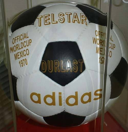 Настоящим прорывом в "мячестроении" стал Adidas Telstar — официальный игровой мяч ЧМ по футболу 1970 года в Мексике. Мяч разработан компанией Adidas для чемпионата Европы по футболу 1968 года. На ЧМ-1974 года в ФРГ его модификация Telstar Durlast была одним из двух официальных мячей наравне с Chile Durlast, который отличался от Telstar Durlast только цветом — был полностью белым. Дизайн из 20 белых шестиугольников и 12 черных пятиугольников был создан на основе внешнего вида спутника «Телстар» — первого активного спутника связи, который обеспечивал трансляцию телепрограммы. Спутник был запущен 10 июля 1962, вышел из строя 21 февраля 1963, однако до сих пор находится на орбите. Позже название «Телстар» давалось и другим телевизионным спутникам. ЧМ-1970 стал первым транслировавшийся по ТВ в прямом эфире, и сочетание черных и белых элементов мяча оказалось удачным для изображения на черно-белых телевизорах, за что Telstar прозвали «Звездой телевидения» (Star of Television). В то время как
