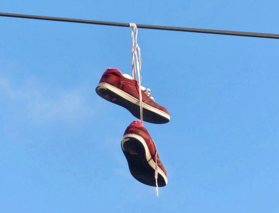 Что означают кроссовки или кеды, висящие на проводах возле дроги или в переулках?