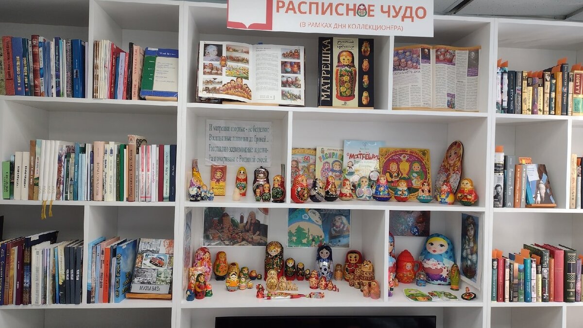 Презентация в модельной библиотеке «Фолиант» книжной выставки-инсталляции-русских деревянных кукол- матрешек. К 21 сентября - российскому Дню коллекционера. К 26 сентября – открытию библиотеки после ремонта. К 1 октября - Дню пожилого человека 21 сентября в России отмечается День коллекционера. Праздник посвящен одному из популярных хобби - собиранию марок, календариков, открыток, значков, спичечных этикеток игрушек, предметов искусства, засушенных растений, географических карт и многого другого. Серьезными коллекциями подобные накопления назвать трудно, зато какой азарт! Иногда среди предметов встречаются редкие экземпляры и особо ценные вещи - фолианты, старинные иконы, монеты, ордена, предметы искусства и игрушки. Стоимость ряда коллекций может достигать нескольких миллионов рублей или долларов. Их продают на аукционах Sotheby's и Christie’s. Но несмотря на стоимость предметов, для каждого увлеченного собирателя его коллекция по-своему бесценна. …Как-то так уж повелось на Руси, что
