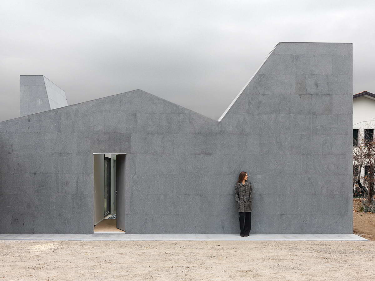 Этот необычный одноэтажный дом построен в сложной городской среде в 50 километрах от Милана. Форма и общее интровертное архитектурное решение обусловлены особенностями окружения — дом как бы пытается защитить себя путём уменьшения размеров и количество проёмов с внешней стороны. Такая закрытость компенсируется внутренними двориками, закрытыми и открытыми, а также верхние фонари, создающие три световых колодца в гостиной, на кухне и в комнате для медитации. Кроме того, теоретически в проекте заложена возможность расширения в случае роста семьи. Снаружи дом отделан серым канадским гранитом. Название: Wigglyhouse
