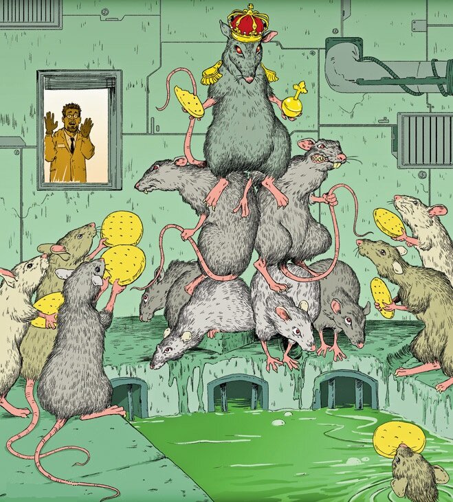 Знаменитый эксперимент Дидье Дезора с крысами, который показал, что у крыс ВСЕГДА идёт распределение на "эксплуататоров", "рабов", "раба-козла отпущения" и "свободного" интересен своим продолжением. Когда в группу набирали одних "эксплуататоров" роли распределялись ТОЧНО ТАК ЖЕ. Такая же иерархия воспроизводилась и среди "рабов", и "рабов-козлов отпущения". И среди "свободных" Это значит, что подобное распределение является СИСТЕМНЫМ свойством крысиной популяции. Так же, как злонамеренность является неотъемлемым свойством человечества. Из чего следуют 2 безрадостных (и неприятных для жертв) вывода: 1) люди ВСЕГДА будут подавлять, унижать, эксплуатировать, уничтожать друг друга (с той или иной степенью интенсивности, зависящей от кучи разных факторов) 2) те кого подавляют являются ТАКИМИ ЖЕ носителями зла (подавления, унижения, эксплуатации, обмана, уничтожения), как и те, кто их подавляют и, при "изменении раскладов", с радостью из "рабов" превратятся в "господ". Даже если не хотят "Ск