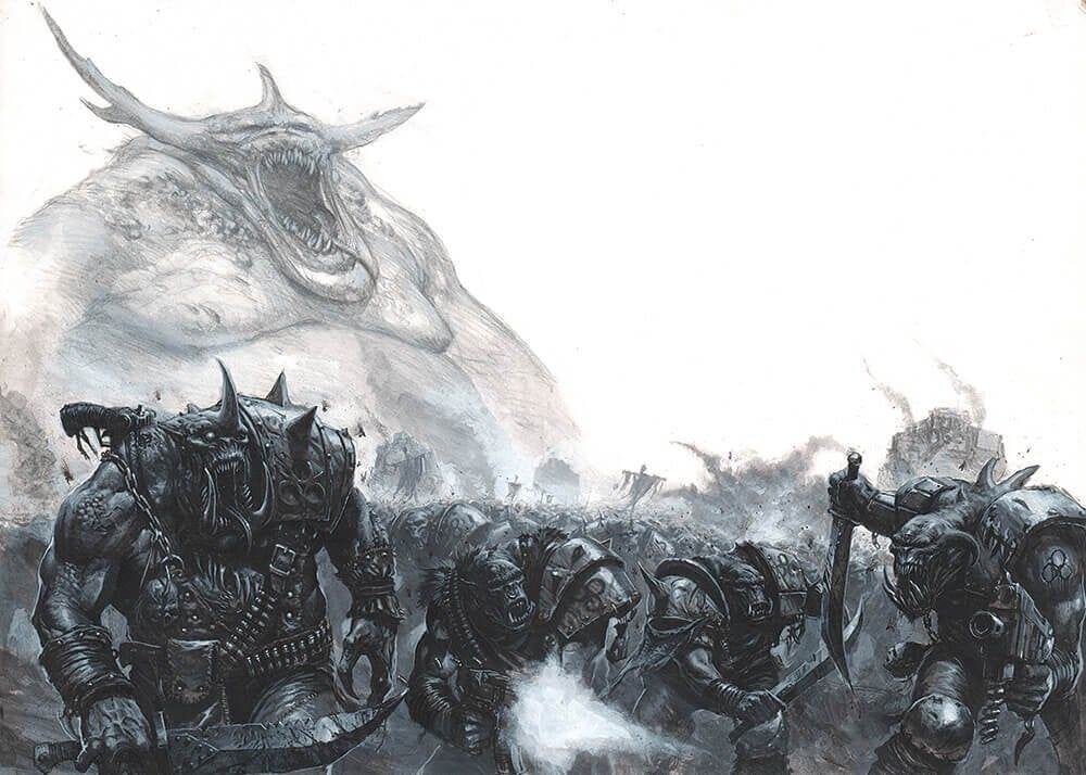 Орки! Орки! Орки! Вааааагх! Продолжу тему Орков Хаоса и расскажу о том как же их отражали в правилах настольного Warhammer 40k. Охотники на демонических орков Когда-то давно, году в 2003 вышла в свет 2-ая редакция Кодекса Охотников на Демонов. Именно в ней и были упомянуты на официальном уровне Орки Хаоса. Забавно, что Охотники преследуют орков по целому ряду причин, главная из которых — одержимость Варбосса. Кстати, есть и вторая причина — орки перепутали Нургла с Горком или Морком, они сами не поняли кто это был конкретно, и стали ему поклоняться. Это привело к неожиданным для них последствиям. Причин, по которым преследовали Демонических Орков было 10, о них я расскажу в отдельному посте, чтобы не перегружать статью. Пусть их не так много, но про каждую есть что сказать в отдельности. Этот случай привлек внимание сообщества и даже в известном многим журнале White Dwarf в номере №280 была статья посвященная конверсии орков Нургла из этого кодекса. Статья называлась — "Turning to the