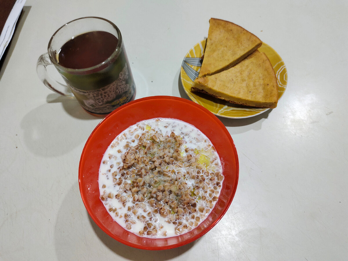 Всем привет! А мы продолжаем наш челлендж неделя на 500 рублей! День 3. Вторник, 20 сентября Утро как-то сразу не задалось 😮 Я планировала сделать сыну на завтрак #овяноблины с бананом , соорудила #тесто , разогрела сковороду, налила первый блинчик... А перевернуть не могу, он весь рвется и распадается... Кое-как соскребла его со сковородки, сковородку помыла. Опять поставила... 🙄 Решила - наверно, масла мало налила, ведь под первый блинчик всегда нужно налить немного масла. Налила побольше. 🙇🤷🤦 Бесполезно! Второй блинчик я собрала со сковородки кусочками, залила эти кусочки кефиром, добавила ягоды и взяла с собой. Добавляют же в йогурт печенье, почему бы не добавить неудачный, разорвавшейся блинчик? Поставила тесто в холодильник, вечером разберусь - решила. Сыну быстренько погрела гречку с молоком и отрезала несколько кусочков "плоского пирога" 😄 Пирог пекла с вечера, обычный, на кефире, а плоским он вышел, потому что теста для большой формы оказалось маловато))) Но это не п