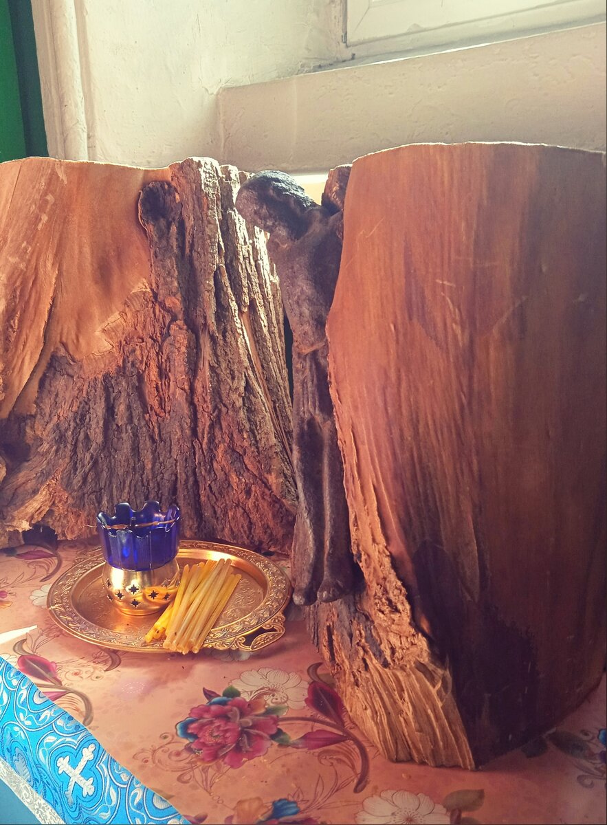 Спаситель, явившийся.... из липы. Необычную скульптуру, найденную несколько лет назад в Камешковском районе, называют настоящим чудом. И связано это с историей ее обретения. Есть в Камешковском районе село с райским названием - Эдемское (бывшее Введенское). В селе есть храм Всех Святых и Дмитрия Солунского. Построена церковь была усердием местного помещика - окольничего Никиты Акинфова в 1691 году. И это первый каменный храм в ковровской округе. Лет 200 назад ( предположим) кто-то изготовил из железа фигурку Спасителя и подарил церкви. Что-то пошло не так, и фигурка оказалась на молодом деревце близ храма. Возможно, решили ее таким образом сберечь. Дерево росло. И железный Спаситель врос в его сердцевину. Смотрю... и не очень понимаю, как он внутри ствола-то оказался?