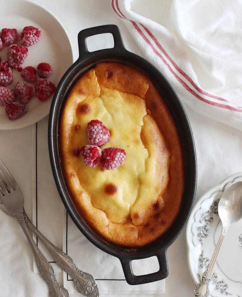 А давайте приготовим французкий десерт клафути ? Очень вкусный, необычный и нежный, а самое главное - простой, получится абсолютно у всех . ИНГРЕДИЕНТЫ : Сливки 33% - 150 мл, Сыр творожный - 150 г, Сахар - 60 г, Мука - 20 г, Яйца - 75 г, Желтки - 50 г, Ваниль - щепотка, Ягоды - 150 г ( у меня малина, можно взять вишню ), Сливочное масло - 10 г . ПРИГОТОВЛЕНИЕ : 1) Сливки и творожный сыр хорошо перемешать до однородной массы . 2) К сырно - сливочной массе добавить сахар, просеянную муку, ваниль . В конце вмешать яйца и желтки . 3) Всё тщательно перемешать . Форму смазать сливочным маслом, выложить ягоды, залить сливочно - яичной смесью . 4) Выпекать в разогретой до 180 градусов духовке примерно 40 минут до красивого золотистого цвета . Приятного аппетита ! #клафути #клафутисягодами #выпечка #выпечкакчаю #вкусно #вкусныерецептысфото #вкусныерецепты #люблюготовить #фудблогер #фудблог
