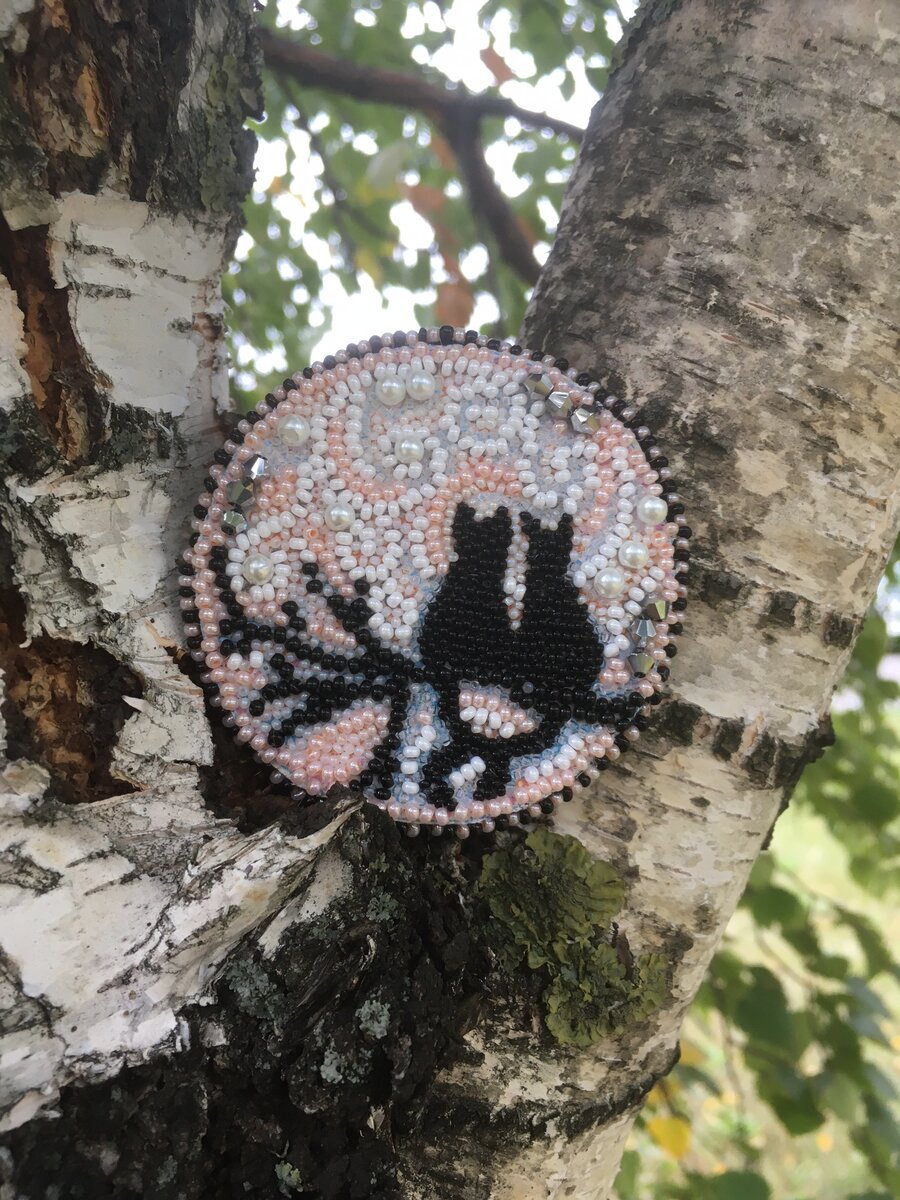 Я увидела картинку с двумя котиками, которые сидели и их хвостики переплетись, захотелось создать такую Брошь и вот она нежная и изящная готова. Думаю, подарю ее прекрасной девушке Марине, у нее уже был день рождения, кажется она любит собак, но я Брошь вижу у нее.