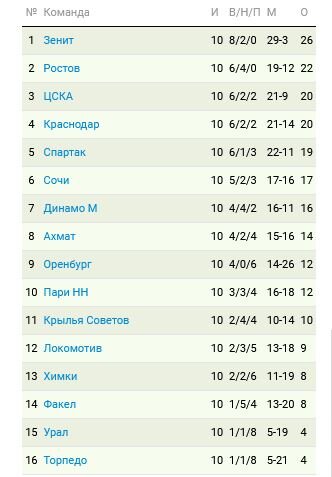 Чемпионат прогнозов форума "Спорт-Бар". Итоги 10-го тура РПЛ.