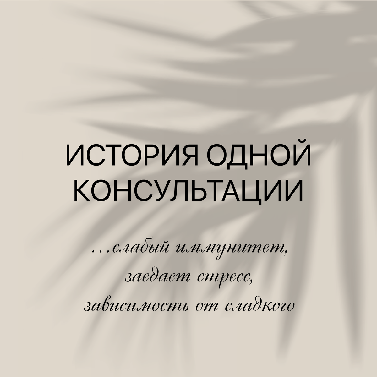 История одной консультации 🔸Дарья, 31год Обратилась ко мне для консультации Запрос: слабый иммунитет (недавно переболела ковид), нафтизиновая зависимость, заедает стрессы, зависимость от сладкого. Мы встретились в ZOOM 👉🏻Девушка рассказала о своем питании и образе жизни. -После подъема Дарья выпивает стакан воды с лимоном, затем делает дыхательную гимнастику, потом завтракает (через час-два) -На завтрак бывает: кофе с булкой, каша из крупы (пшенная, рисовая, геркулесовая), вареные яйца, омлет, блины -На обед и на ужин: супы (уха, куриный), овощное рагу (морковь, картофель, капуста), курица, говядина, рыба, субпродукты, крупы 👉🏻Дарья ложится спать в 23-24ч., встает в 7-8ч. Физическая активность: прогулки 👉🏻Мы выяснили, что в последнее время ее иммунитет пошатнулся и она стала часто болеть различными простудными заболеваниями (в основном заражается от детей). Очень любит сладкое и не может без него совсем. Старается вести здоровый образ жизни, но не получается восстановить иммунит
