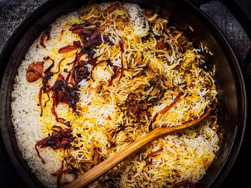 Бирьяни — это южноазиатское блюдо, в котором баранина, баранина, говядина, курица, морепродукты или смесь овощей выкладываются на рис. Техника укладывания слоев отличает бирьяни от других блюд из риса, таких как плов.