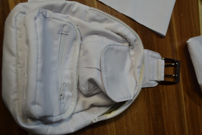 Принцип такой же, как при пошиве внешних карманчиков. Разница только в размере деталей. Но к этому моменту пошива, вы уже наверняка разобрались с шитьем по кругу. Поэтому, сложности быть не должно. Однако, на маленьких детальках (карманчиках) и усадка маленькая. Эти детали больше, соответственно в итоге усадка тоже станет более заметной. Все это исправляется путем растягивания деталей по длине шва. И не по окончанию пошива, а и в процессе тоже.