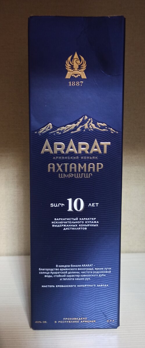 Страна: Армения Производитель: Ереванский Коньячный Завод Минимальный возраст коньячных дистиллятов 10 лет Сорта винограда: Кангун, Ркацители, Воскеат, Бананц Дата розлива: 27.05.2022 Куплен по акции за 1100р объем 0.7 Коньячное производство в Армении началось еще в 1887 году, когда Нерсес Таирян, являющийся купцом первой гильдии, построил винно-водочный завод, на котором впервые стали производить армянские коньяки. И именно тогда зародились инновации и технологии, до сих пор являющиеся отличительной чертой бренда Арарат. Позже предприятие приобрели владельцы знаменитого в России товарищества «Н.Л. Шустов и сыновья». Коньяки Арарат приобрели такую популярность, что уже через некоторое время фирма стала официальным поставщиком Двора Его Императорского Величества, а в 1902 году продукция завода завоевала Гран-при в Париже, что стало доказательством высочайшего качества напитка. Коньяк "Арарат", который производит Ереванский Коньячный Завод, — это национальная легенда, воплощающая ун