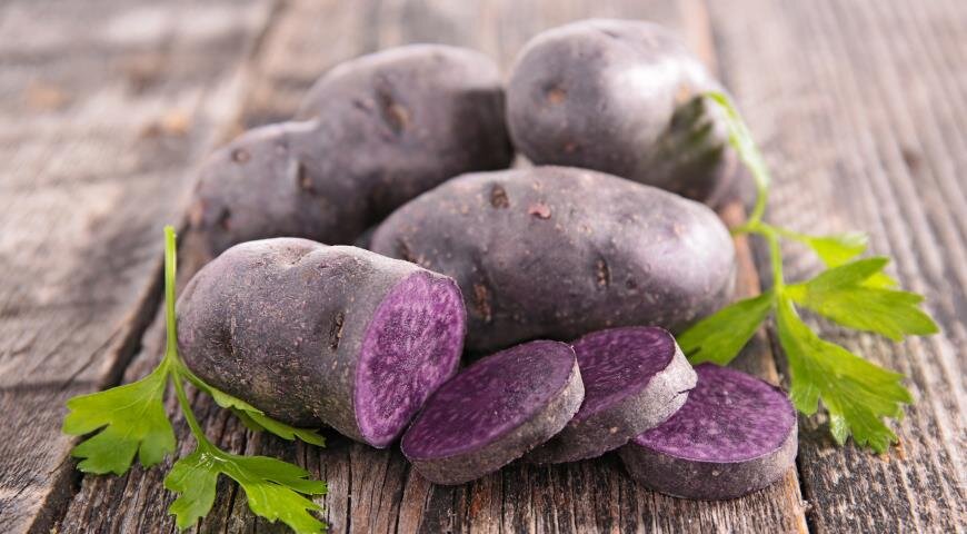 Когда речь заходит о цветном картофеле, все моментально соглашаются: она очень полезна! Как показали проведенные в США исследования, у людей, которые ежедневно едят фиолетовые и розовые клубни, укрепляются стенки кровеносных сосудов, снижается риск развития атеросклероза и онкологических заболеваний. Почему? Да потому что в такой картошке очень много антоцианов – именно они отвечают за яркую окраску мякоти. В сиреневых и розовых клубнях много не только антоцианов, но каротиноидов. Для сравнения: Многие дачники, когда впервые видят цветной картофель, приходят в ужас. Говорят, никогда такой есть не будут. Это же ГМО! Поверьте, нет. Цветные сорта были созданы селекционерами с участием диких форм картофеля, в которых есть гены, отвечающие за яркую окраску: ген К контролирует красный пигмент, ген Р – синий.