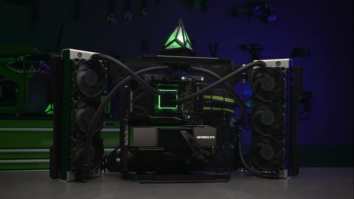 На презентации 20 сентября NVIDIA представила флагманские видеокарты нового поколения GeForce RTX 4090 и 4080. NVIDIA назвала цены и даты выхода новых видеокарт GeForce RTX 4090 и 4080 Позже компания представила небольшой ролик о сборке ПК на основе топовой RTX 4090, и пользователи Сети смогли оценить размеры грядущей новинки. Габариты устройства оказались весьма внушительными. GeForce RTX 4090 появится в продаже с 12 октября. Стоимость новой карты стартует от $ 1599 или 97,5 тысячи рублей. Графический ускоритель будет оснащен чипом Ada Lovelace с производительностью до 200 терафлопс в режиме трассировки лучей и 24 Гб видеопамяти. Заглавное фото: NVIDIA