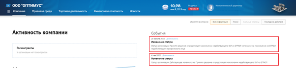Включите в мероприятия по должной осмотрительности регулярный мониторинг компании. Проверить, получила ли компания “черную метку” и подала ли заявление в госорган, можно на сайте налоговой. Однако проще и быстрее это сделать через сервис Seldon.Basis. В нем автоматизировано отслеживание событий компании, вы можете его подключить в личном кабинете или загрузить списком. В случае изменений вы будете получать оповещения на личную почту.