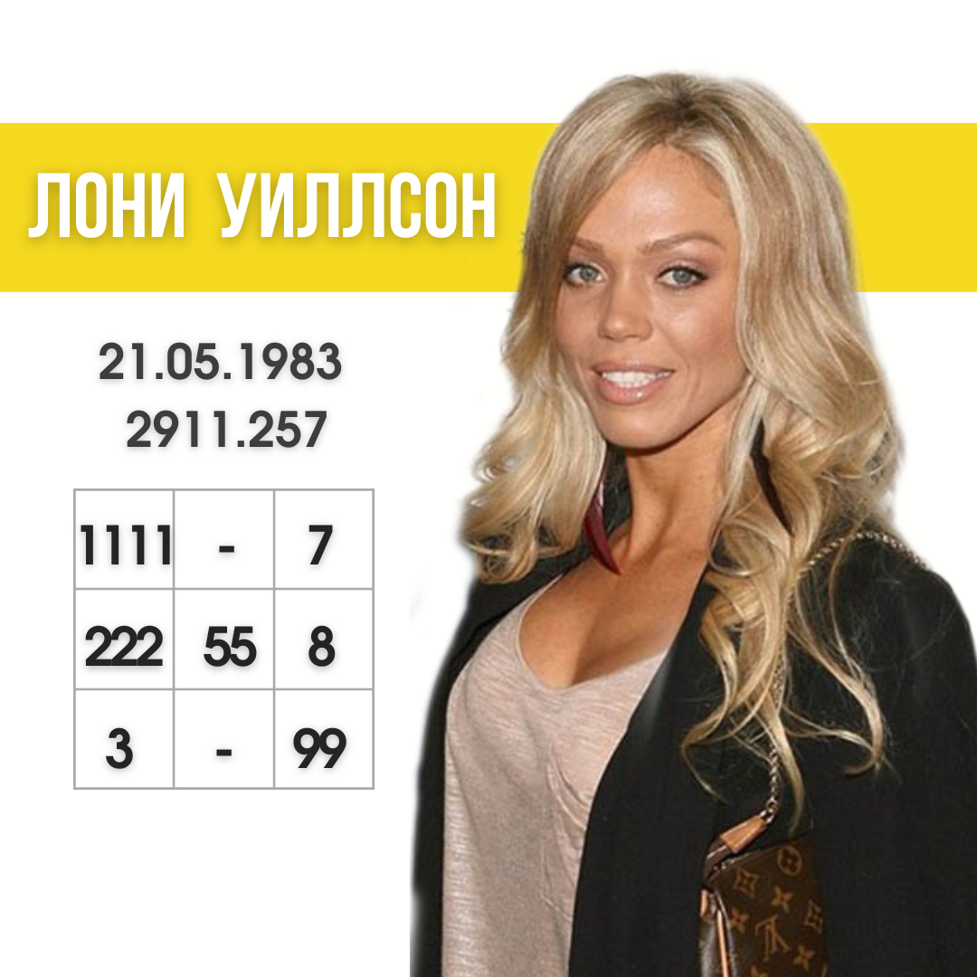 Не так давно я прочитала историю девушки-модели, о которой ничего не знала. Это история Лони Уиллсон (фамилия в разных источниках указана по-разному), у которой было всё, о чём только можно мечтать: слава, успех, деньги, красота. Но произошла трансформация в обратную сторону и сейчас девушка оказалась бездомной, не имеет работы, денег, спит, где придётся и ест, что попадётся. Пишут, что всему виной её брак с Джереми Джексоном (снимался в фильме «Спасатели Малибу»), который приобщил её к наркотикам, нещадно бил, а потом и вовсе оказалось, что он заложил всё имущество, и модель оказалась на улице. Ей пытались помочь друзья, но ничего из этого не вышло. Давайте посмотрим внимательно на личность Лони, исходя из даты рождения. Она родилась 21.05.1983 2911.257 ❓Неужели жизнь «из князи в грязи» заложена у неё в дате рождения? ❗️"Нет и ещё раз нет", скажу я вам ⠀На своём обучении katerinanumerolog.ru/baza я рассказываю о том, что у человека есть 3 дороги: 📈📈созидательная (создающая) дорога,