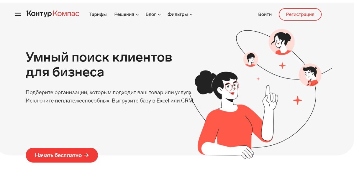 Не всегда большие базы клиентов подходят малому бизнесу, который работает локально или в не большом городке. Кроме email-рассылки в таком случае могут быть актуальны холодные/теплые звонки или визиты в компанию. И так, начнем с самого простого и бесплатного. 1. Это сервис "Контур.Компас". Многие пользуются бухгалтерией или ЭЦП данного сервиса. Но мы сейчас посмотрим как Контур.Компас ищет клиентов для бизнеса бесплатно - 50 компаний в месяц. Для этого нужно зарегистрироваться и войти в систему. Далее выбираем карточку "Создать сегмент" Далее по списку аккуратно выбираем: Регион и населенные пункты, Сферу деятельности, Лицензии, Данные, Финансы и т.д. Чем больше вы зададите параметров, тем точнее и меньше получится компаний, т.к. скачать вы сможете всего 50. Есть платный сервис. Для выгрузки 400 контактов в месяц в Контуре.Компас стоит 13500 рублей. Что бы вы могли быстро и эффективно начать работать, мы предлагаем воспользоваться нашими бизнес базами e-mail адресов по России. Базы п