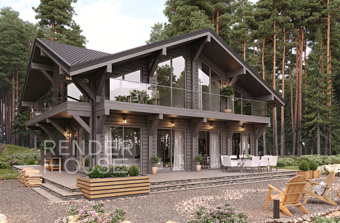 Характеристики проекта Количество этажей: 2 этажа Стиль: Фахверк, Шале Cрок строительства: от 6-8 месяцев Мансарда: Да Балкон: Да Котельная: Да Дом фахверк: Да Панорамные окна: Да Наш проект АСПЕН — яркий пример того, как на основе типового решения можно разработать новое уникальное пространство, оптимально подходящее под пожелания и образ жизни конкретной семьи. Наши заказчики, молодая семейная пара, вдохновились типовым проектом АРТЭКО — домом из клееного бруса, спроектированного на стыке стилей шале и фахверк. При этом, они хотели бы значительно изменить планировку: увеличить площадь гостиной и второго света, сделать больше зону мастер-спальни, добавить котельную и хозяйственно-бытовые помещения.