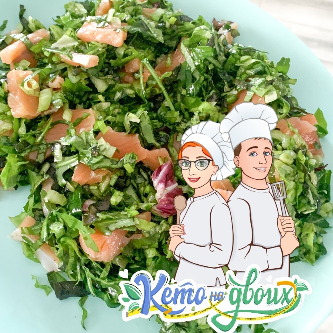Очень быстрый кето-рецепт) Мы использовали разные виды зеленых салатов, добавили немного красного лука и слабосоленую семгу. По желанию, можно добавить, например, авокадо. Вкусно и просто! Приятного аппетита!👨🍳👩🍳