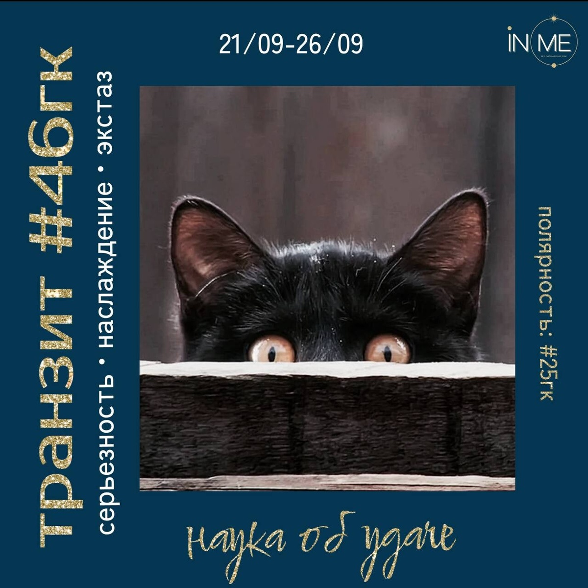 Дорогие, рано утром мы вступили в один из самых волшебных транзитов года - #46гк 🌌 В нем прекрасно абсолютно все - от названия гексаграммы (Наука об удаче) до его частотного диапазона. Однако его тень - одна из самых сложно преодолимых среди всей плеяды 64 ключей. Сегодня особенно непросто игнорировать внешнее давление и провокационные обстоятельства. Поэтому я не буду. Чуть попозже на канале IN-ME: care я расскажу о том, как снизить тревожность и не мешать себе жить, давая волю бетономешалке. А здесь поговорим про энергии предстоящих 5 дней. Тень #46гк - серьёзность - считается коллективной и самой вязкой, особенно в эпоху перемен. Переоценивая контроль и свое влияние на окружающий мир, мы начинаем воспринимать все очень личностно, болезненно проживаем любую ошибку, нервно реагируем на все, что идёт не по нашему плану и панически боимся любых изменений, потому что они влекут за собой неизвестность😱 Под давлением тени мы склонны преувеличивать значимость слов и событий, необоснован