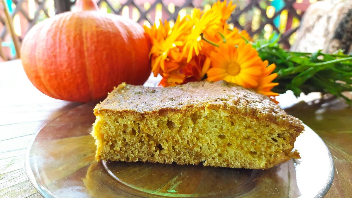 Продукты Тыква сырая – 400 г (2 стакана) Яйца – 2 шт. Сметана – 1 ст. л. (25 г) Масло растительное – 100 г. (6 ст. л.) Масло сливочное – 50 г. ( 2,5 столовых ложек) Сахар – 400 г (2 стакана) Мука – 480 г (3 стакана) Соль – 1 щепотка Ванильный сахар – 0,5 ч. л. Сода – 1 ч. л. Приготовление: Желтки растереть с сахаром, добавить размягченное сливочное масло. Белки взбить с щепоткой соли. Смешать с желтковой массой. Добавит тыкву, натертую на крупной тёрке. Соду погасить в сметане и добавить в тесто. Добавить растительное масло, муку и ванильный сахар, хорошо перемешать. По желанию, в тесто можно добавить яблоко и /или корицу, также цедру апельсина или лимона – на ваш вкус. А ещё очень вкусно, если добавить тыквенные семечки. Выложить в смазанную растительным маслом форму и выпекать около 30 минут, при 180 градусах. После остывания можно посыпать сахарной пудрой. Приятного аппетита!