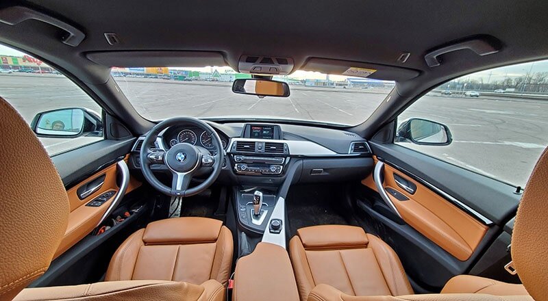Салон выполнен в типичном «бээмвэшном» стиле. Передняя панель унифицирована, но есть два важных момента, отличающих GT от обычной «трешки».