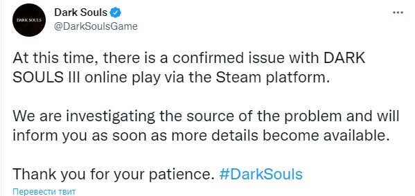 Разработчики хардкорного экшена Dark Souls 3 из студии From Software написали в твиттере, что у тайтла есть проблемы с сетевой игрой через Steam. Каких-либо деталей команда не предоставила, однако отметила, что как только проблему устранят, то об этом сразу же расскажут. С чем связаны сбои с серверами, пока неизвестно. Возможно, небольшие проделки хакеров, устроивших эксплойт игр студии. Тогда из-за эксплойта, который ставил под угрозу личные данные геймеров, серверы Dark Souls, Dark Souls 2 и Dark Souls 3 не работали почти полгода. From Software боролась с проблемой и, вроде как, решила ее. Dark Souls 3 доступна на PC, PS4 и Xbox One, а также на PS5 и Xbox Series X/S по обратной совместимости. Комментарии на сайте