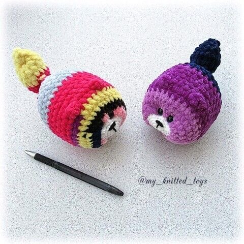 Котики Колобки (из остатков плюшевой пряжи)