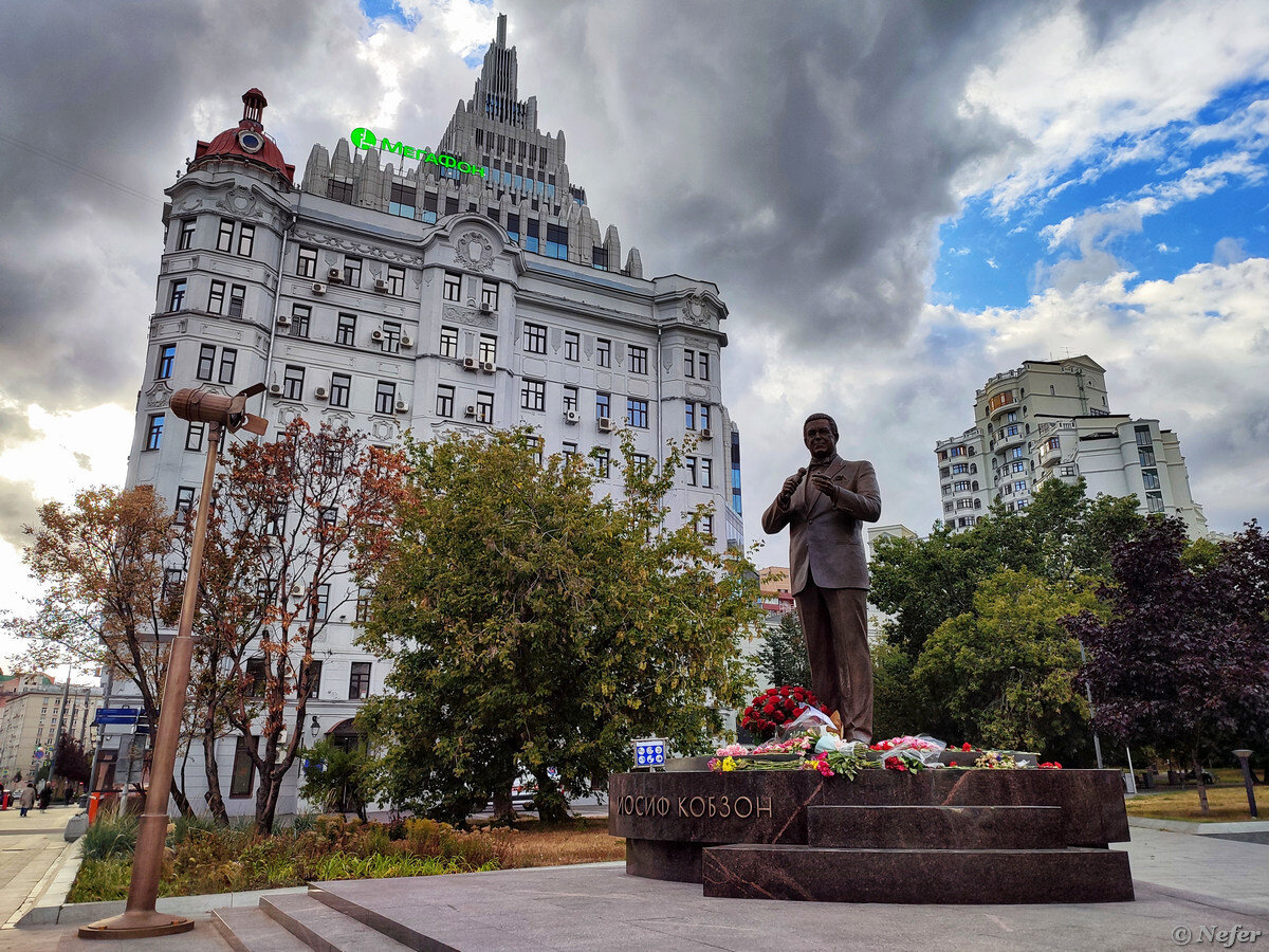 Недавно в Москве установили памятник Иосифу Кобзону. Его открыли к 85-летию со дня рождения артиста. В новостях показывали фигуру с микрофоном и цветы на постаменте. Оказалось, кроме этого там есть что порассматривать. Думала, просто памятник, стандартная скульптура. Подошла сфотографировать и поняла, что стою на пластинке. Всесоюзная фирма "Мелодия", Апрелевский завод. Оригинально, отличная идея. Всего их двенадцать. На каждой пластинке QR-код, можно отсканировать его и послушать песни. В соцсетях шло бурное обсуждение касаемо стоимости памятника, расходования бюджетных средств и необходимости скульптуры вообще. На этой территории планировалось возведение второй очереди комплекса "Оружейный". Той самой высотки, которую называют "Зиккурат". Вместо бизнес-центра разбили сквер, а теперь еще установили памятник. Все лучше, чем очередной бетонный монстр. В репертуаре артиста было около 3000 песен. На них выросли поколения, его голос знаком почти каждому. Он пел всю жизнь. Сколько себя помн