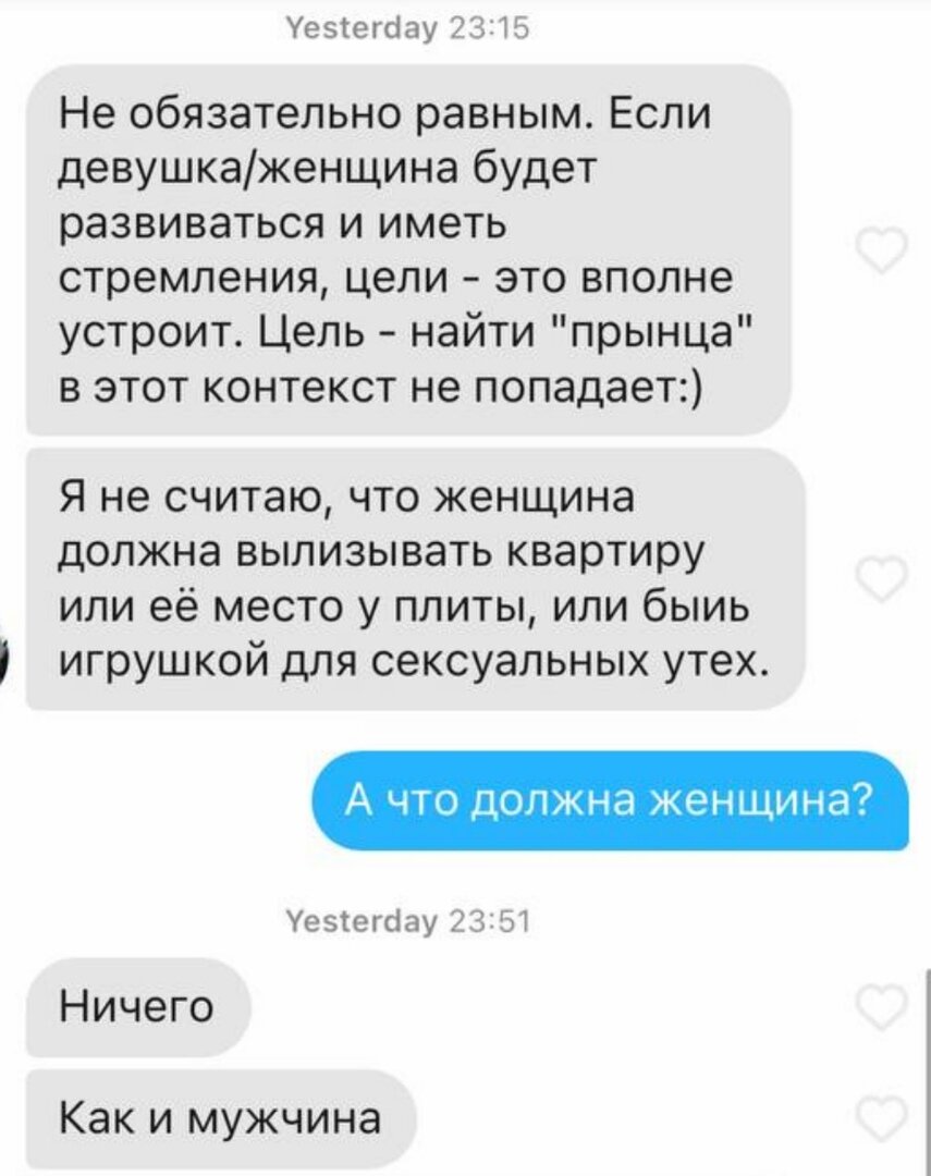 Как понятие о важности гендерных ролей спасает нас от бессмысленной переписки в Тиндер (почти 18+)