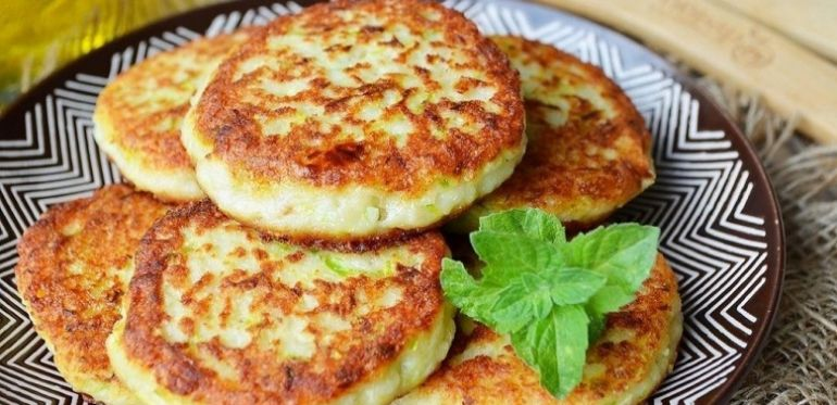 500 г рыбного филе, 50–70 г сала, 1 небольшой кабачок, 2 головки репчатого лука, 2 ломтика хлеба, 1–2 яйца, щепотка сахара, свежемолотый черный перец и соль по вкусу, растительное масло для жарки Пропустить через мясорубку рыбное филе, сало, лук, хлеб без корочки. Кабачок натереть на терке, посолить, оставить на 10 минут, затем слегка отжать. Соединить с фаршем, вбить яйцо, добавить соль, сахар, перец, тщательно перемешать. Сформовать котлеты и обжарить в масле с обеих сторон до готовности. Выложить на бумажные полотенца, чтобы стек лишний жир.