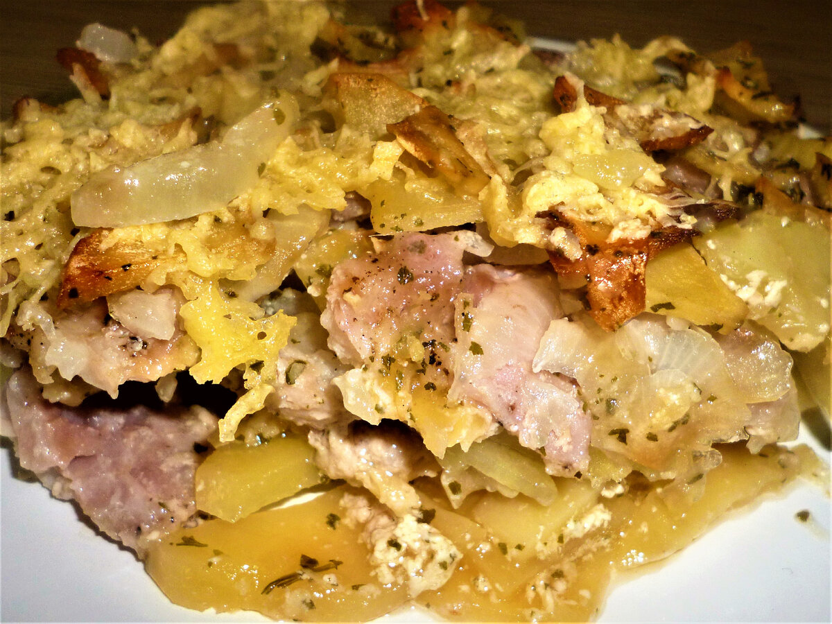 "Слойка" из свинины и картофеля. Интересный способ приготовления "мяса по-французски". Без майонеза.