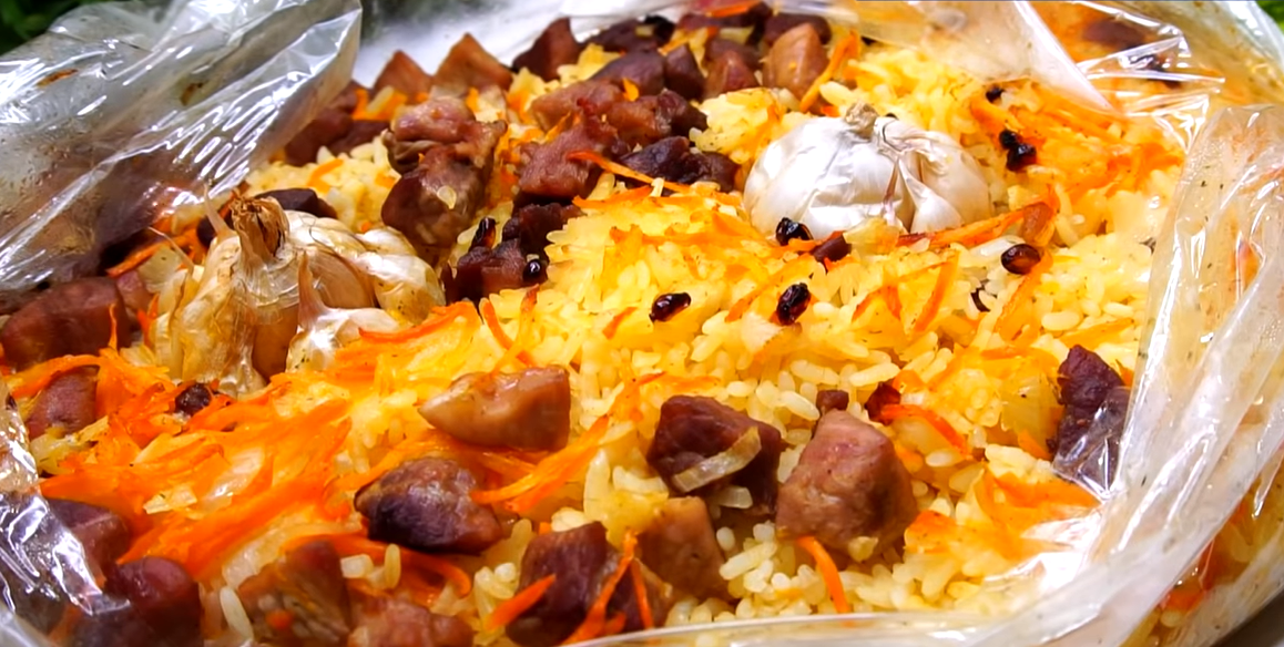 ✅ Даже без казана плов получается рисинка к рисинке, рассыпчатый и очень вкусный. Ужин без хлопот, ничего не подгорает, и стоять у плиты не нужно. Плов с мясом в рукаве для запекания, всё подготовили, сложили и забыли, всё сделает духовка. Рецепт: Рис – 400 гр. Мясо филе – 600 гр. Вода -1 л. Лук -3 шт. Морковь -1-2 шт. Приправа для плова -1-2 ч.л. Куркума -1/3-1 ч.л. Паприка сладкая – 1/2-1 ч.л. Ягоды барбариса -1-2 ч.л. Соль -1 ч.л. (с горкой), Растительное масло -100 мл. Чеснок – 2 головки СПОСОБ ПРИГОТОВЛЕНИЯ Рис промоем в холодной воде Лук нарежем кубиками Морковь натрём на тёрке для корейской моркови Мясо нарежем кубиками В сковороду наливаем растительное масло, кладём мясо и жарим до испарения жидкости и лёгкой золотистости, примерно 6-7 минут В этой же сковороде обжарим лук и морковь вместе до полуготовности В подходящую миску отправляем обжаренное мясо, лук с морковью, рис, добавляем соль и специи, хорошо перемешиваем и перекладываем в рукав для запекания Вливаем необходимое