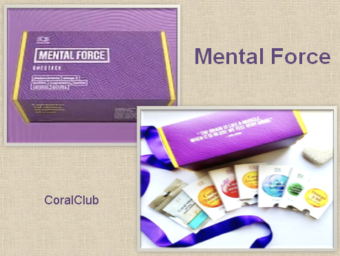Два, а бывает и три раза в год я пропиваю программу Mental Force. Программа способствует: 1) уменьшению повышенной тревожности и раздражительности; 2) улучшению кратковременной и долговременной памяти; 3) повышению концентрации внимания; 4) нормализации цикла сна-бодрствования; Ученики, студенты, преподаватели и все, кто занят мыслительной деятельностью для нас с Вами готовое, удобное коробочное решение. Перед школой, университетом, во время учебы и на экзаменах – помощник N1. Программа рассчитана на месяц, из трех этапов и обязательно включает в себя Coral Mine для обогащения воды, ведь только на влажный здоровый мозг полностью записывается информация. Приобрести ее можно в любом городе любой страны или через интернет магазин с доставкой к двери, предварительно оформив дисконт 20% ниже по ссылке Что же включает в себя эта программа. 1.МАЙНДСЕТ. Комплекс растительных экстрактов (гинкго билоба, готу кола, имбирь, розмарин, зверобой), аминокислот (тирозин и теанин) и витаминов гр