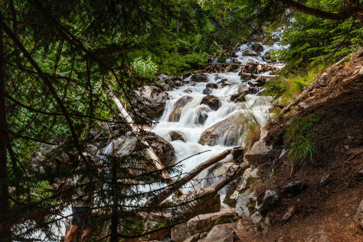Водопад "Белый" на одноименной реке в Архызе - одно из мест, которое стоит посетить. Во-первых, это красиво. Во-вторых, дорога до него частично проходит по руслу реки. И это очень крутой аттракцион, если вы выбрали правильный транспорт. В принципе, если у вас внедорожник, то вы и сами можете без особых проблем доехать до водопада. Каменистая дорога довольно быстро приводит к реке, по которой и придется продолжать движение несколько сотен метров. По пути вы будете встречать палатки любителей соединится с природой (Честно, непонятно, как они могут спать под этот шум воды по ночам и находится в поле зрения снующих туда-сюда туристов на УАЗиках. Я же пожалел казенный кроссовер Geely Atlas Pro (хотя, и он вполне мог бы сюда добраться - полный привод имеется), и оседлал отечественный внедорожник из многочисленного парка, представленного на Софийской поляне. Весело, под местные хиты и с брызгами мы домчали до стоянки у водопада. Потом еще 800 метров в гору, и вы у его подножия. Впрочем,