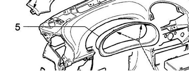 Решение 1 Найдено весьма интересное решение многоуважаемым Гагаринцем Известен факт крепления на заводе щитка панели приборов (5) всего в 2 точках. Третья точка крепления в нижней части щитка не задействована, из-за невозможности закрутить туда обычный винт с головкой под крестовую отвёртку. Но, есть выход! Нужно запастись винтом с головкой под ключ и всё становится на свои места.