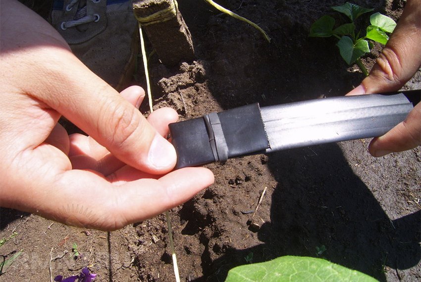 В последних случаях ленты и трубки располагают капельницами вверх во избежание засорения. Чтобы замедлить испарение влаги из грунта, поверх ленты укладывают мульчу слоем в 7–10 см.