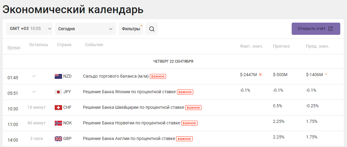 Индекс доллара США подскочил вечером в среду до самого высокого с июля 2002 года уровня - выше 111,70 - после решения Федеральной резервной системы США повысить учетную ставку на 75 базисных пунктов (б.п.). Доллар сохраняет силу в начале четверга, пока участники рынка готовятся к вердиктам Швейцарского национального банка (ШНБ) и Банка Англии. Позднее сегодня Европейская комиссия опубликует данные по потребительскому доверию за сентябрь, а экономическая повестка дня в США будет включать еженедельные первичные заявки на пособие по безработице. Хотя повышение ставки ФРС на 75 б.п. соответствовало ожиданиям рынка, сводка экономических прогнозов показала ястребиный уклон в дальнейших перспективах политики. Точечная диаграмма показала, что медианный прогноз по ставке по федеральным фондам на конец 2023 года вырос до 4,6% с 3,8% в июньской точечной диаграмме. Кроме того, политики видят ставку на уровне 3,9% к концу 2024 года по сравнению с предыдущей оценкой 3,4%. Во время пресс-конференции