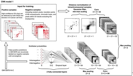 В новом исследовании, опубликованном в журнале Science Advances, ученые из Северо-Западного университета (Northwestern University) обнаружили, что модель машинного обучения помогает обнаружить сотни генетических мутаций при раке, которые невозможно обнаружить с помощью текущего секвенирования генома. Секвенирование всего генома Внутри каждой клетки длинные нити ДНК должны быть точно свернуты и организованы так, чтобы они могли поместиться внутри ядра, диаметр которого обычно составляет всего несколько микрометров. Ранее ученые показали, что структурные варианты в геномах рака, такие как инверсии или транслокации, могут быть обнаружены с помощью инструментов геномного анализа, таких как Hi-C. Эти паттерны могут быть распознаны компьютерными алгоритмами как индикаторы структурных вариаций. Кроме того, большие структурные вариации обычно упускаются при секвенировании всего генома (WGS) и даже при секвенировании с длинным чтением, таком как Nanopore. «WGS очень хорошо выявляет мутации пар