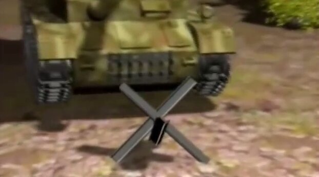 На изготовление одного ежа уходит в среднем 280-300 кг. металла и всего полтора часа рабочего времени, на установку краном 6 минут, но чаще обходились безо всякой техники, в ручную, для этого вполне достаточно двух человек. По схеме Гориккера ежи следует расставлять в шахматном порядке это ключевое условие не выполнялось, кроме того их часто связывали колючей проволокой, а это не правильно, ежи должны свободно перекатываться, чтоб в конечном итоге оказаться под днищем танка.