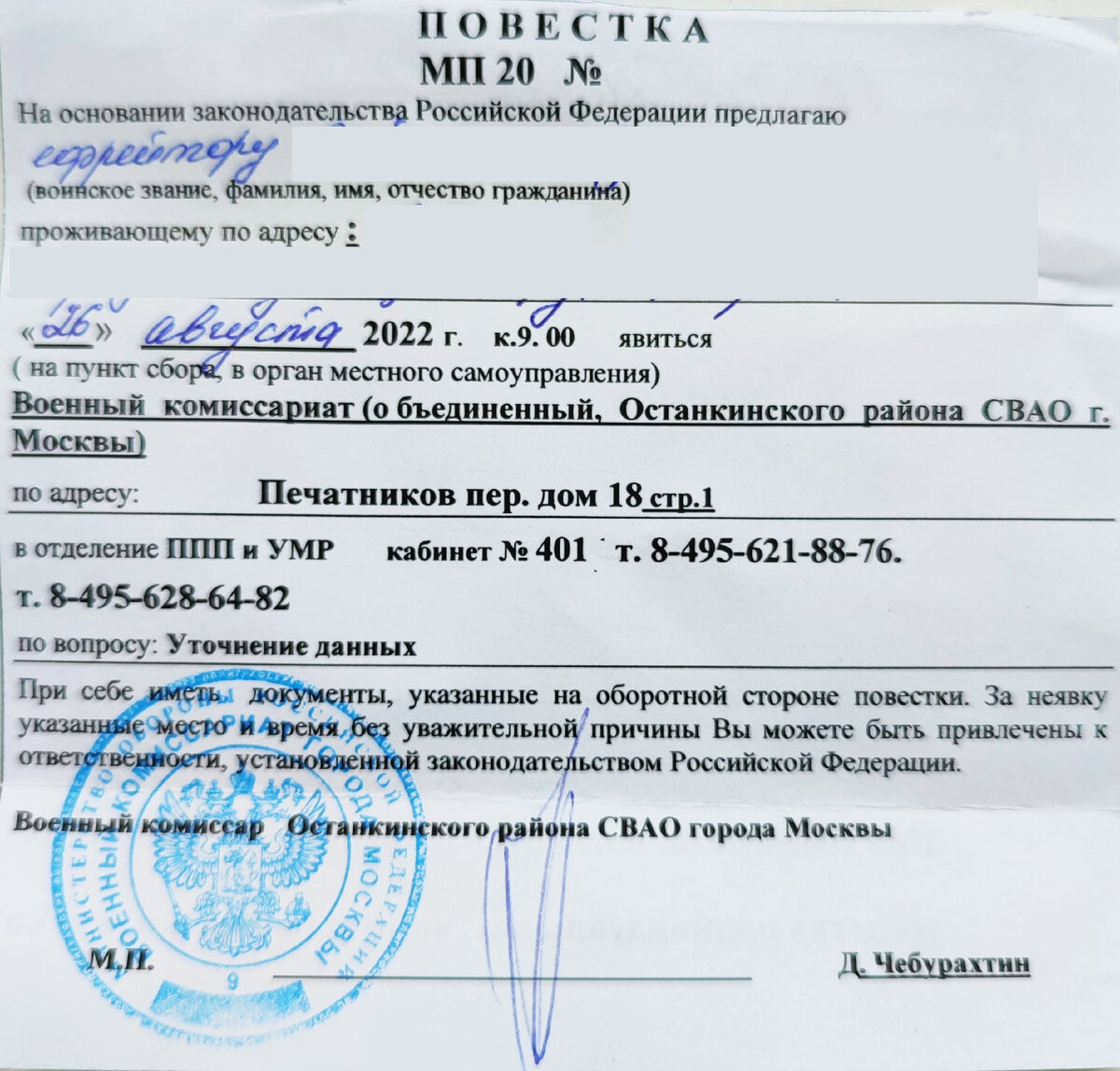 Рассказываю информацию из первых рук. Если Вам пришла Повестка "для уточнения данных," выглядит она следующим образом: Это означает что военкомат не смог связаться с Вами по городскому телефону, который указан в личном деле хранящимся в военкомате. Если Вы недавно отслужили и ушли в запас, скорей всего, Вы оставляли мобильный телефон для связи. И по нему с Вами не смогли связаться. Именно поэтому Вам отправили повестку на адрес. Что хотят уточнить? (На повестке две группы вопросов.) Первая группа вопросов: Вторая группа вопросов: Вам предложат "контракт" на 3 или 6 месяцев, данный контракт это участие в боевых действиях на Украине. Если Вы согласны на месте, Вы убываете от военкомата на сборный пункт уже на следующий день! Отправка контрактников производится каждый день. Если Вам необходимо время подумать, так и скажете "я подумаю и сообщу." Вам дадут номер, куда вы позвоните и скажете свой ответ или же вам перезвонят сами. Если ответ положительный, даже если вы по