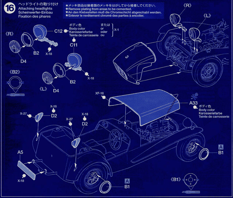 Здравствуйте дорогие друзья! Сегодня мой рассказ от том, как строилась модель Lotus7 из набора производимого японской фирмой Tamiya. Обзор кита был в моей предыдущей статье, которая по непонятным мне причинам была представлена в ленте всего 145-ю показами и тем кто её пропустил, рекомендую заглянуть сюда. Модель в масштабе 1:24 даже при высокой детализации обычно собирается без особых проблем, но в нашем случае, ввиду весьма скромных габаритов прототипа, сборка превращается в почти ювелирную работу поскольку некоторые детали имеют микроскопические размеры. Следуя инструкции начнём сбоку с кузова. Его основная часть выполнена одной деталью и требует лишь окраски. Пересмотрев множество фотографий прототипа, нашел вариант, который показался мне интересным, хотя такая схема окраски и добавила сложности в работе. По моему убеждению, модели имеющие небольшие габариты должны иметь яркую окраску, поскольку тёмные цвета могут затруднить её визуальное восприятие. Кузов прототипа изготовлялся и
