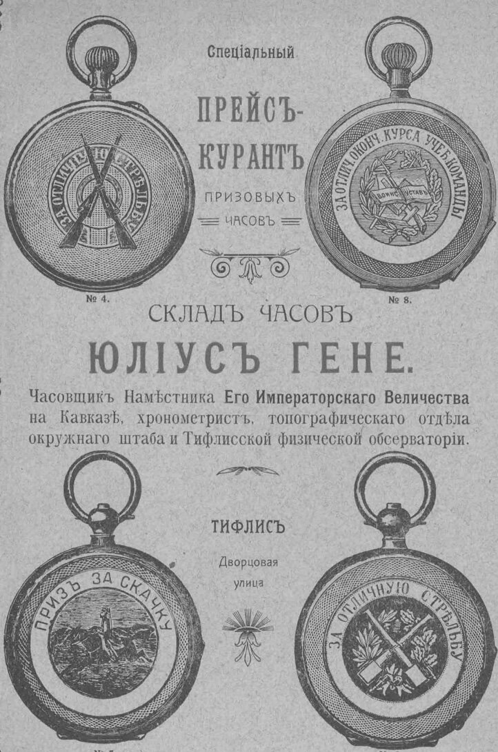 Приветствую друзья! Предлагаю Вашему вниманию прейскурант призовых часов для господ военных, часового склада Юлиуса Гене в Тифлисе (Тбилиси) 1913 года. Мне понравилась надпись на обложке:«Часовщик Наместника Его Императорского Величества на Кавказе». Типа почетного титула Поставщика Императорского двора. Как всегда интересно вступительное слово главы фирмы. Благодарю Васъ за внимание! Делитесь своим мнением в комментариях. Много дореволюционных каталогов и прейскурантов в формате статей и видео обзоров можно найти в ПОДБОРКЕ ПОДПИСЫВАЙТЕСЬ НА КАНАЛ!